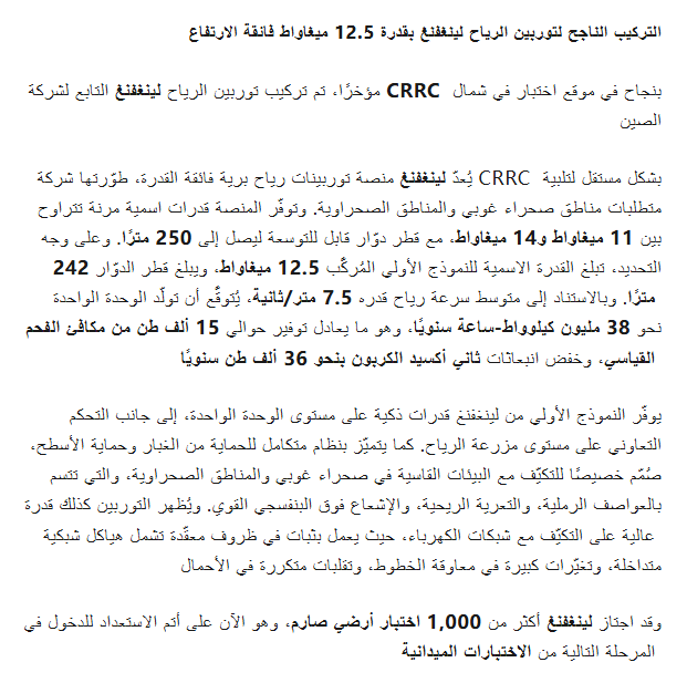 التركيب الناجح لتوربين الرياح لينغفنغ بقدرة 12.5 ميغاواط فائقة الارتفاع