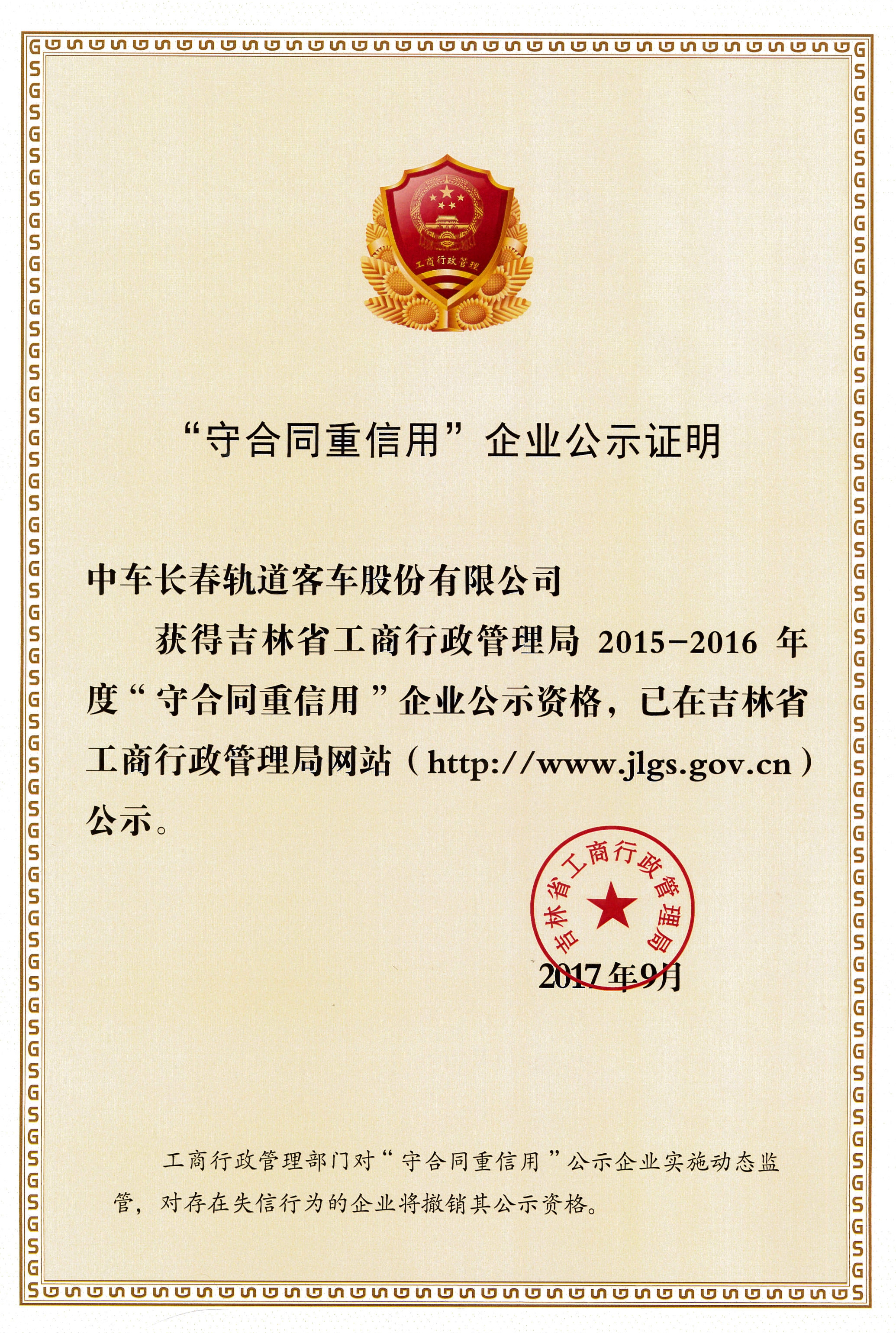 公司获得吉林省工商管理局颁发的2015—2016年度吉林省“守合同重信用”企业荣誉称号 (污污污在线观看)