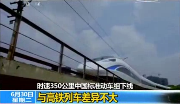 央视:时速350公里中国标准动车组下线