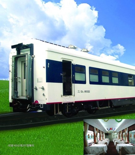 CA25T型特快餐车2004年开始生产,采用25A型钢结构参数和SW220K型转向架,构造速度170km/h,以后可提速至200km/h 污污污视频在线观看,密接式车钩,弹性胶泥缓冲器,折棚密封风挡,DC600V集中供电,车顶单元空调,两侧安装裙板采用电气化厨房设备,同年,生产第二批CA25T特快餐车时,车下枕内电气布线采用整体模块装车,采用PLC控制无主网络监控系统,实现全自动监控。