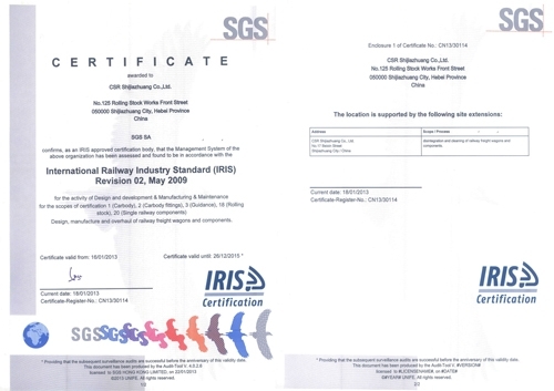 In order to ensure the effective product realization, new technologies, equipments, and management methods have been continuously introduced in for the process research and development, thereby greatly promoting the platform construction of manufacturing technology and laying solid foundation for the optimization of product mix, the promotion of product grade and technological level, and the sustainable development of the company. In terms of construction of product quality assurance system, our company took the lead of being certified by the quality/environment/occupational health and safety integrated management system of GB/T 19001-2000, GB/T 24001-1996 and GB/T 28001-2001 in the industry 污污污在线观看. Moreover, our company has been certified by the measurement management system of GB/T 19022-2003 and the International Railway Industry Standard (IRIS) in February, 2005 and December, 2012 respectively.