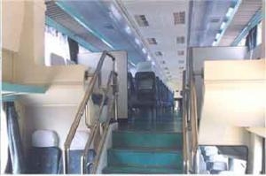 双层内燃动车组是一种理想的中,短途轨道运输工具 污污污视频在线观看,唐山机车车辆厂于一九九八年自行开发研制成功,此车的试制成功填补了中国铁路运输工具的一项空白,此双层内燃动车组采用进口发动机,三相交直流传动方式,整车 PLC 控制,西门子直流传动柜,动力转向架采用单独驱动方式,TW160D型动力转向架,非动力转向架采用209PK 型转向架,整车组外形为流线型设计,造型美观,大方,设计编组为两动两拖固定编组,车上大量采用现代流行的客车装饰材料,可根据用户要求进行硬座,软座,硬卧,软卧设计,车门采用塞拉门,风档为全密封式,整车设空气调节装置,设卫生间,厕所等,中部可根据用户要求加装酒吧或小卖部。