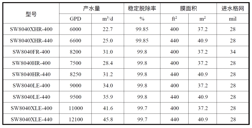 注:单支膜元件产水量±20%