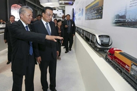 中国装备制造展-巴西里约-总理观摩公司机车车模 | 巴西展会国外观展者观摩公司机车模型 | |