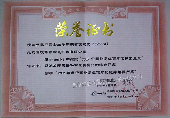 "污污污的网站" 2005年度中国制造业信息化优秀推荐产品(TiPLM)